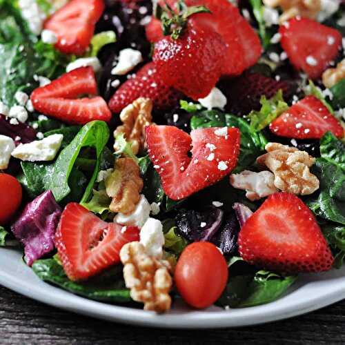This Strawberry Walnut and Feta Salad is sweet and tangy, full of texture and tossed in a delicious red wine vinaigrette