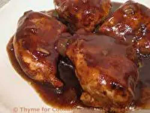 Boneless chicken breasts and button mushrooms cooked in a balsamic butter sauce.