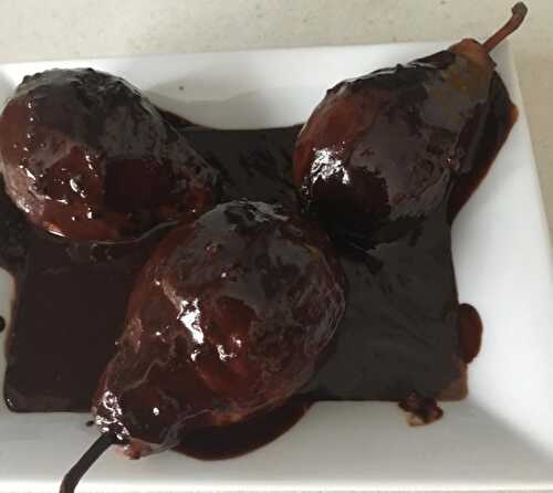 Recipe of the chocolate pear cake, a fondant cake with whole pears and a dark chocolate topping (For a 10 inch / 25 cm rectangular pan 8-10 parts)