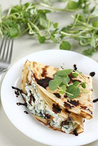 This savoury French toast recipe is stuffed with gooey mozzarella cheese, crusted with crispy parmesan, and topped with garlicky leeks.