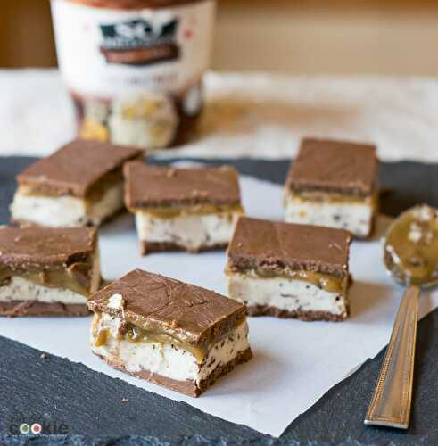 Want a cool treat on hot days? These Caramel Cookie Dough Ice Cream Sandwiches are amazing and you won't believe that they're gluten free and vegan! Gluten free, Vegan; Free of: dairy, eggs, soy, peanuts