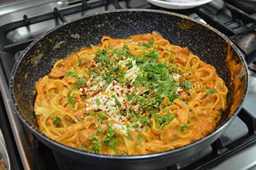 Butter Chicken & Cheese Pasta is an ultimate fusion of Italian pasta with Indian style butter chicken.