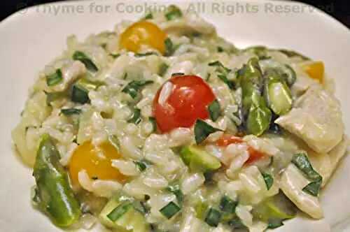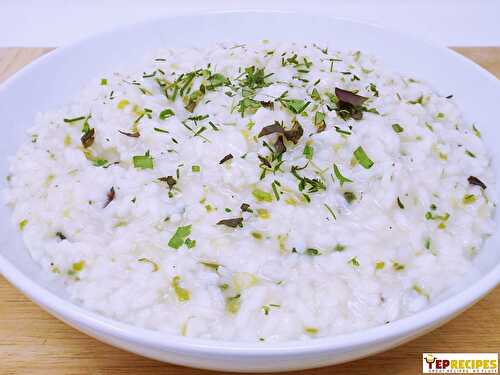 A very lightly seasoned risotto made with green onion and fresh herbs then topped with Parmesan cheese.