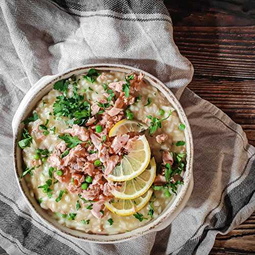 This creamy salmon and lemon risotto is an easy dinner option, ready in less than 30 minutes and filled with fresh, bright summer flavours.