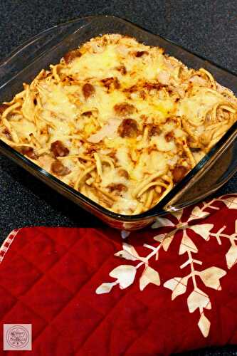 Onepot baked pasta dish where wide and flat cooked pasta sheets are layered with meat and white sauce and then baked to perfection.