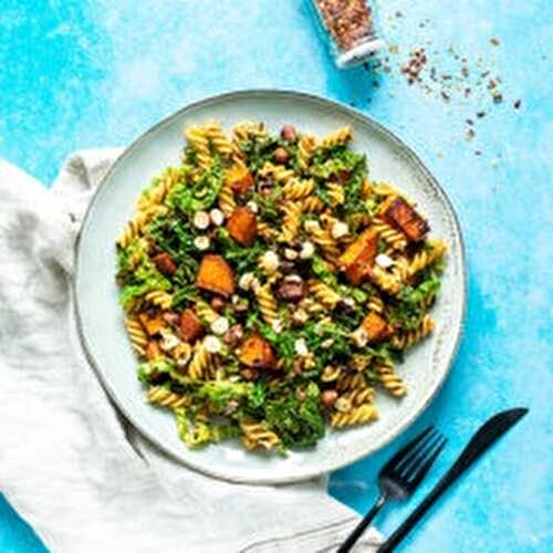Vegan Savoy Cabbage & Fermented Black Bean Pasta with roasted sweet potatoes and hazelnuts in an absolute umami bomb.