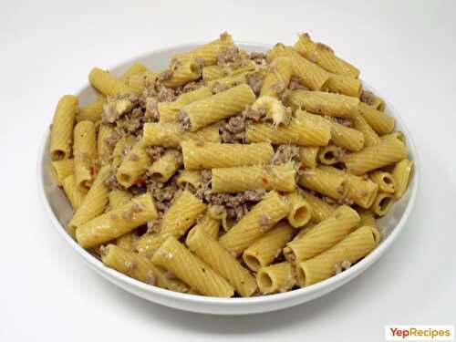 Rigatoni pasta tossed with a spicy homemade Italian pork sausage, artichokes, and freshly grated Parmesan cheese.