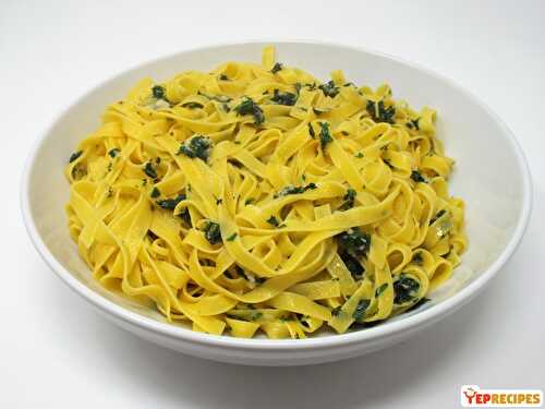 An easy and delicious Italian pasta dish consisting of tagliatelle pasta, fresh parsley, garlic, and Parmesan cheese.