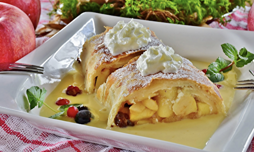 Apple strudel is a traditional Viennese and German strudel that is also a popular pastry in different countries like Austria, Bavaria, Northern Italy, Czech and