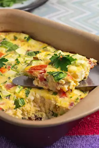 A baked omelette is essentially an omelette that's cooked in the oven instead of on the stovetop.