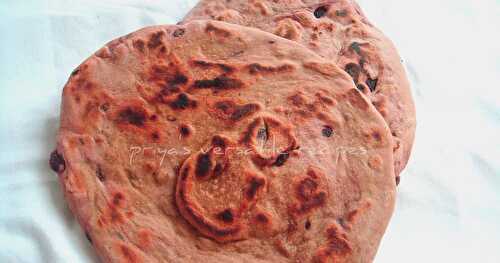 Chicken Naan - Whole wheat flatbread stuffed with spicy chicken stuffing, served as breakfast or as a lunch box option.
