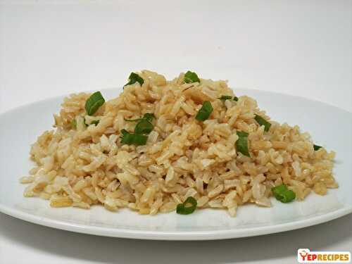 An Asian style steamed brown rice with garlic, sesame oil, and green onions.