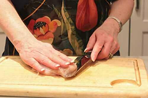 Step by step instructions on how to quickly and easily butterfly and halve a boneless chicken breast.