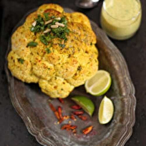 This spicy whole roasted cauliflower is easy to make, but tastes so special.