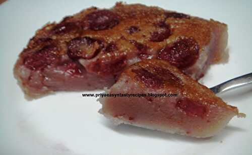 An easy French Clafoutis classic family dessert - Baked cherry custard, a speciality from the Limousin region with added almonds.