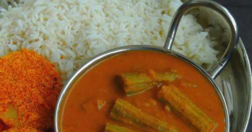 “Ghotache sasav” or Ripe mango curry is made using thick coconut gravy which is tempered using mustard seeds .