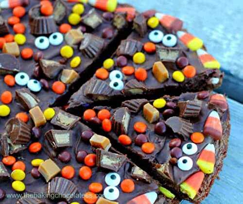 Make Halloween baking fun with this sinfully Wicked Good Halloween Brownie Pizza! It is super fudgy, rich, and decadently topped with your favorite Halloween candies!
