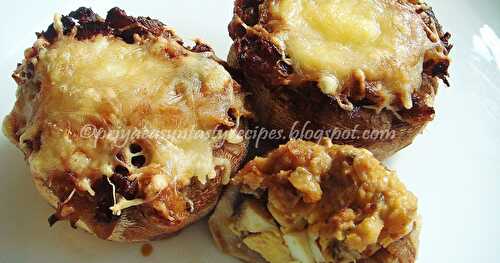 These tandoori stuffed mushrooms are stuffed with finely chopped bell peppers, mushroom and cheese.