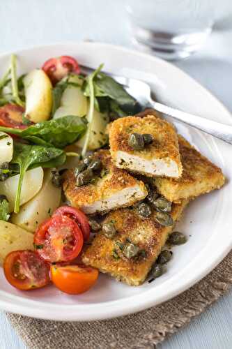 These tofu escalopes are breaded in a crispy, cheesy coating, and can be served in so many different ways.