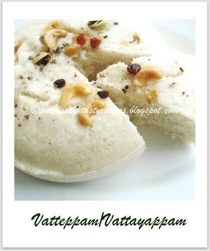 Vattayappam is a soft, spongy steamed cake made from fermented rice flour and coconut.