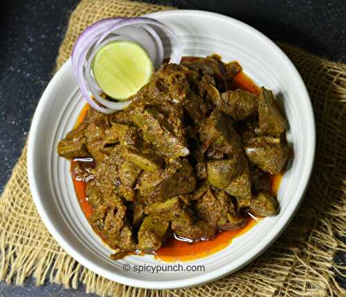Kaleji masala aka mutton liver curry is a spicy, delectable semi-dry curry overloaded with flavours where tender mutton liver pieces are coated with velvety spicy masala.