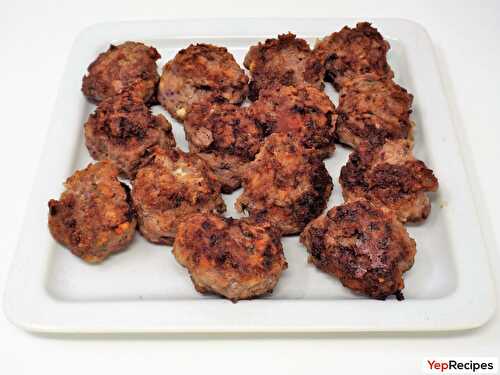 Pan fried flattened meatballs made of ground beef, onion, feta cheese, and mint.