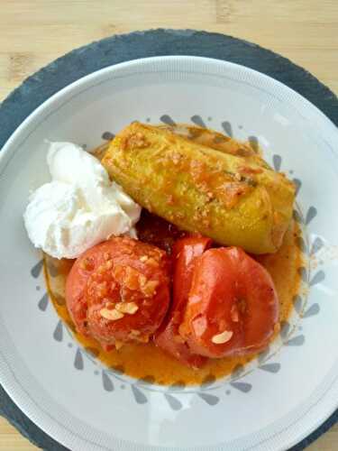 Stuffed Zucchini (Courgette) with Beef, Basil and Quinoa, with a Green Tomato Green Chili Sauce