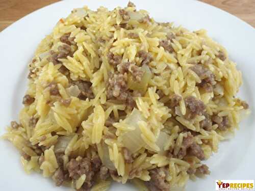 Asparagus and Sausage Meatball Orzo with Parmesan Beer Cream Sauce