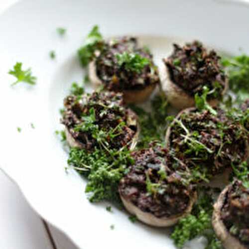 These simple pesto and olive stuffed mushrooms are amazingly delicious and make a great starter, main or snack.
