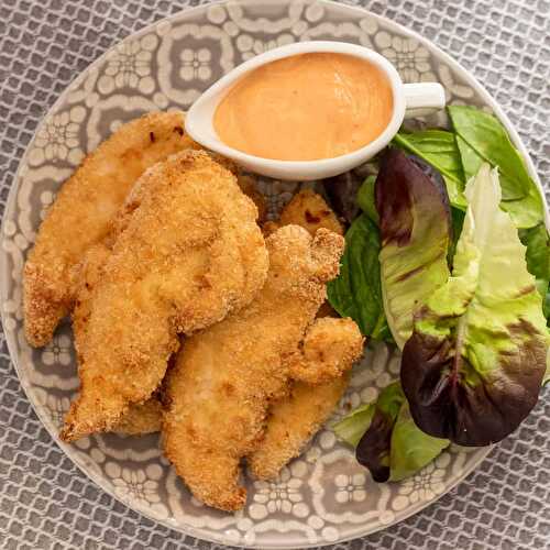 Spicy chicken tenders, a twist on traditional chicken tenders, are coated in a cayenne spiced bread crumb mix, &cooked in an air fryer to crispy perfection.