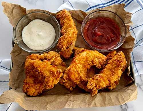 Buffalo chicken tenders are breaded and coated in spicy buffalo sauce and air-fried to perfection.