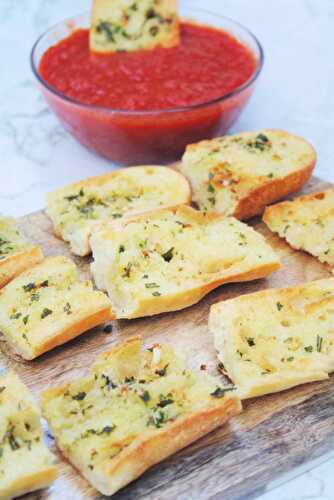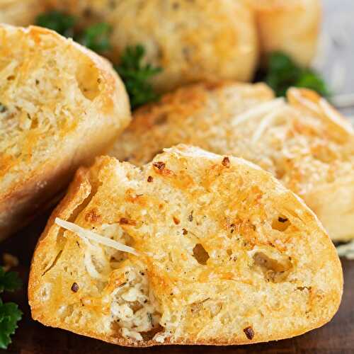 This air fryer Garlic Bread is made in under 10 minutes with simple ingredients! The homemade garlic herb butter and crispy french baguettes are what bring this garlic bread to the next level!