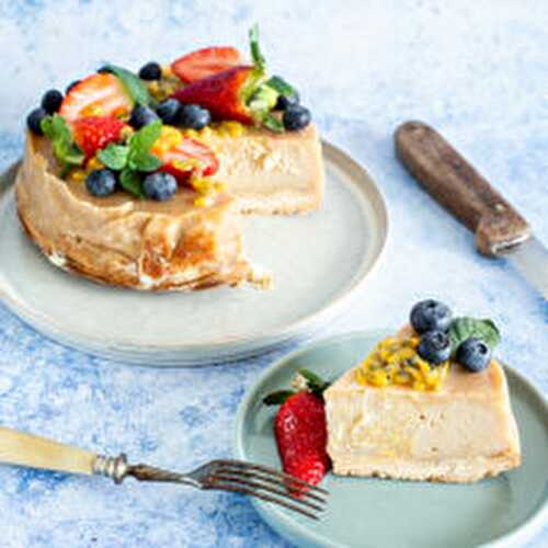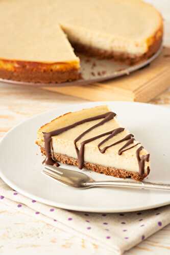 This baked vegan cheesecake is simple - crumbly crust topped with a creamy filling that is a pleasure to slice.