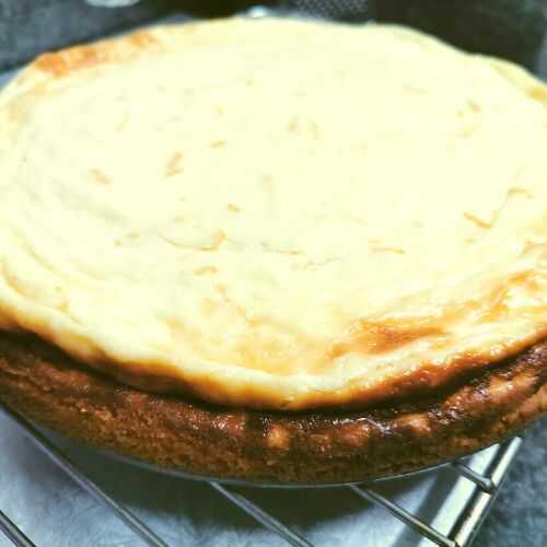 Unctuous and tangy baked cheesecake flavoured with Limoncello and with large dollops of lemon curd and a biscuit base