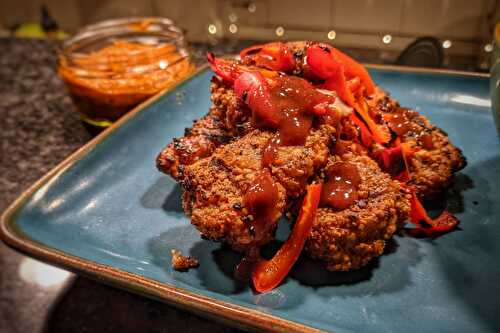 Chicken Thighs coated with a peanut crumb and served with a Tomato and Peanut dip.