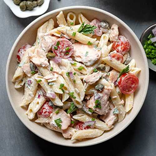 This creamy salmon recipe can be made with penne or any other short pasta (linguine or spaghetti will also do).