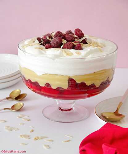 Classic English Trifle With Store Cupboard Ingredients and Frozen Raspberries - easy, quick, no-bake dessert that tastes delicious!
