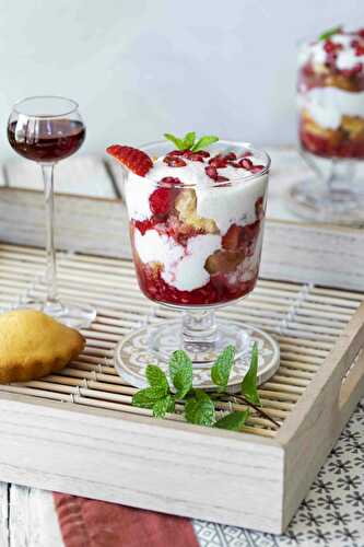 Macaron Berry Sherry Trifle - a traditional British party dessert, replacing classic trifle sponges or lady fingers with gluten free Parisian macaron shells.