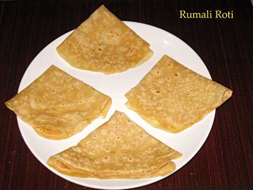 Rumali Roti,is a very thin flat bread,rumal means handkerchief in Hindi/Urdu ,so rumali roti means roti being as thin as handkerchief.