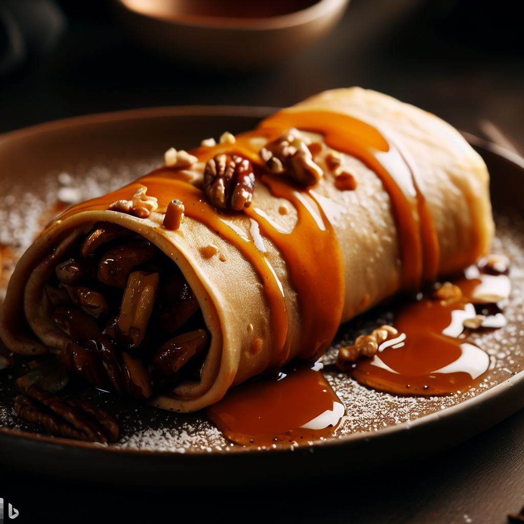 Spread each crepe with salted caramel, sprinkle with chopped pecans, and serve.