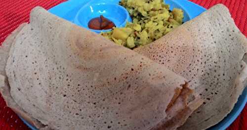 Ragi dosa is a fermented dosa made with finger millet, urad dal, and rice.