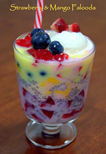 Strawberry Mango Falooda is a refreshing summer dessert drink with loads of fruits, nuts, custard, and ice cream.