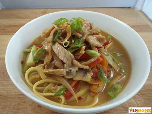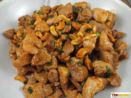 A quick, easy, delicious and spicy Asian pork dish with cashews and green onion.