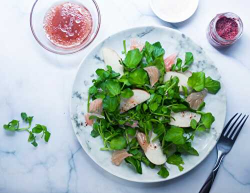 An easy to make watercress and apple fresh salad, it combines sweet, and sour tastes.