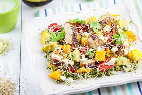 Healthy quinoa salad with turbocharged blackened chicken.