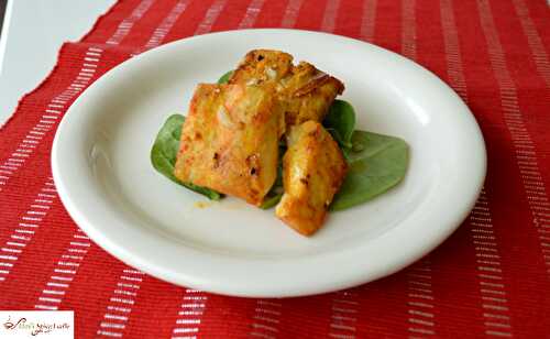 Lemony spiced fish Tikka Kebab coated with a tangy spice blend rub and best cooked on an outdoor grill, and served with a generous squeeze of lemon juice.