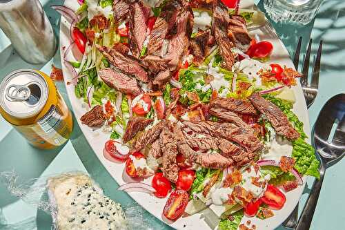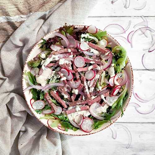 Quick and easy - ready in mere minutes! This steak salad with blue cheese dressing is perfect for a tasty midweek meal any time of the year!