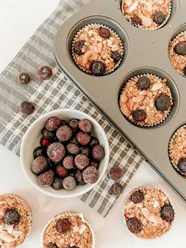 Banana Blueberry Coconut Baked Oat Cups for a great on-the-go breakfast or snack option! Made with almond milk, maple syrup, bananas, blueberries, coconut and oats, these tasty little cups are a healthier option for a sweet treat.