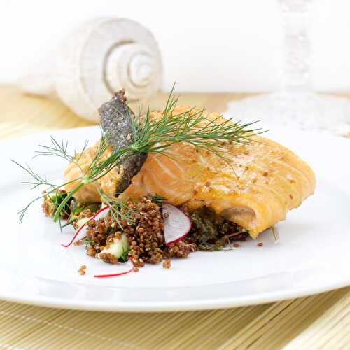 Maple-mustard glazed salmon on a red quinoa, dill, cucumber salad and a topping of crunchy skin, what else a Salmon lover could ask for? I’ve used the new technique my mom found which consist…