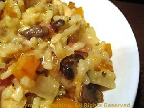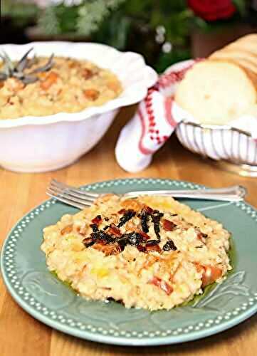 A fabulous Fall dish that combines the flavors of butternut squash, bacon, maple and sage in a hearty risotto.